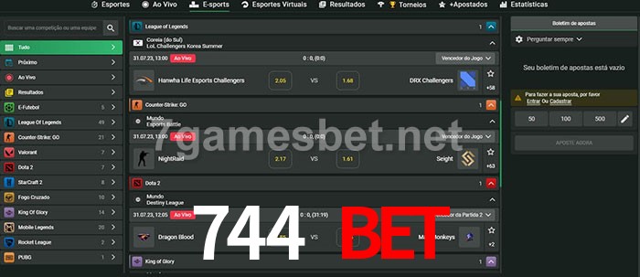 O 744 bet oferece uma grande seleção de opções de apostas em e-sports com probabilidades competitivas